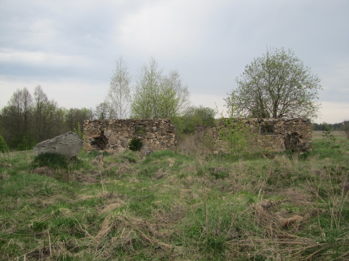 После обеда группа продолжила идти в северо‑восточном направлении. Дойдя до д. Узла Мядельского р‑на, мы осмотрели усадьбу XIX ÷ 1‑й половины XX веков постройки; от неё сохранились лишь фрагменты хозпостройки.