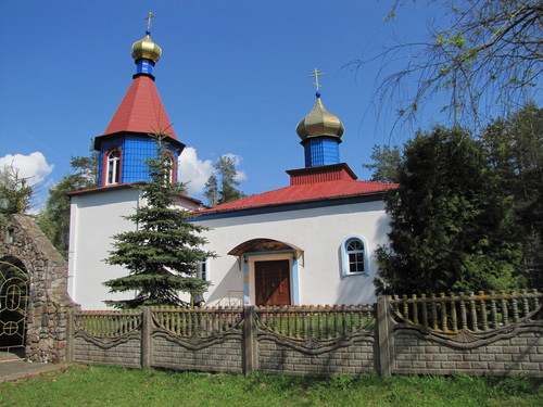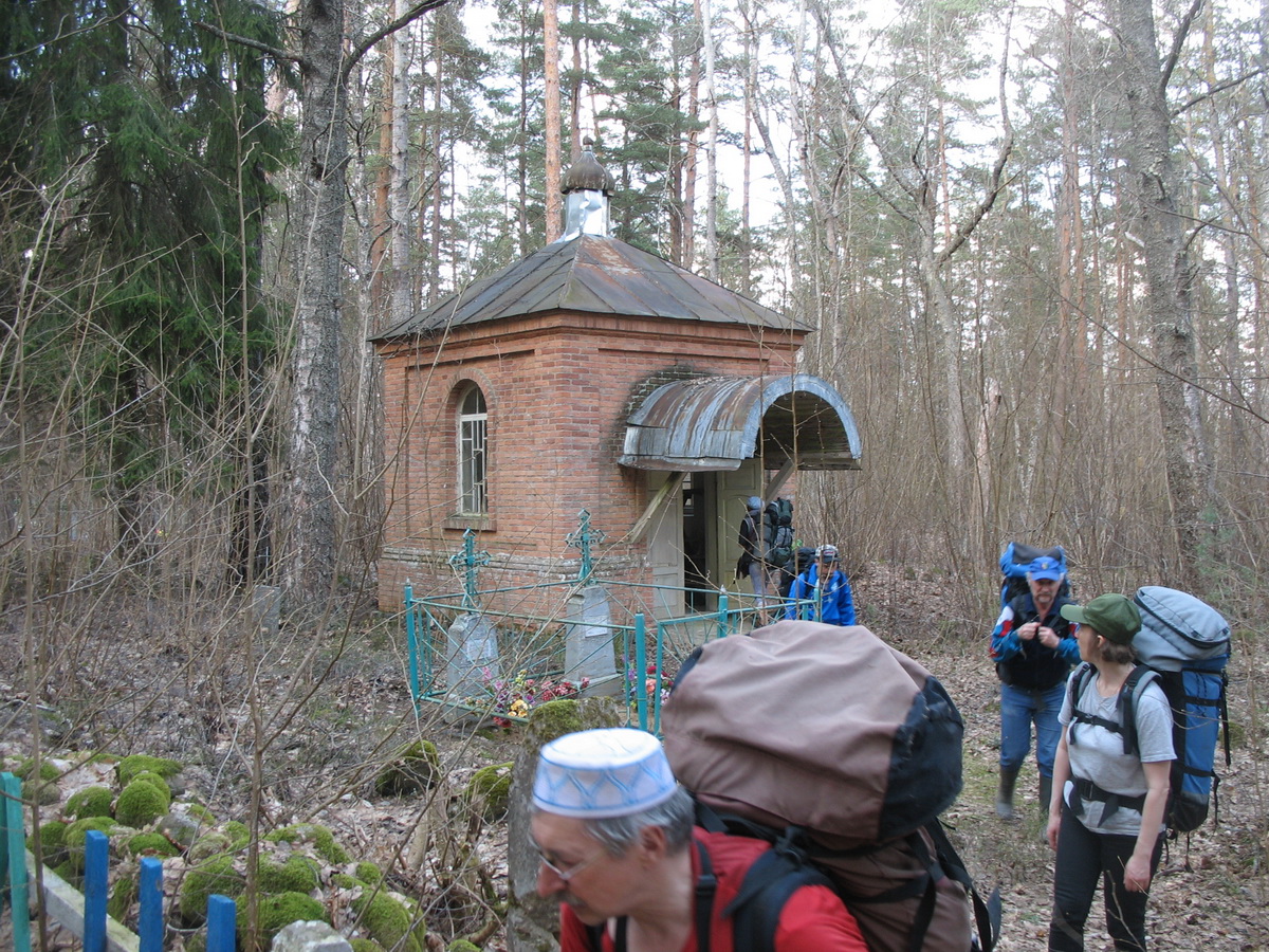 После обеда мы стали от д. Бирули идти на северо‑запад. На окраине деревенского кладбища группа осмотрела часовню‑усыпальницу Юзефовича, построенную в 1900 году.