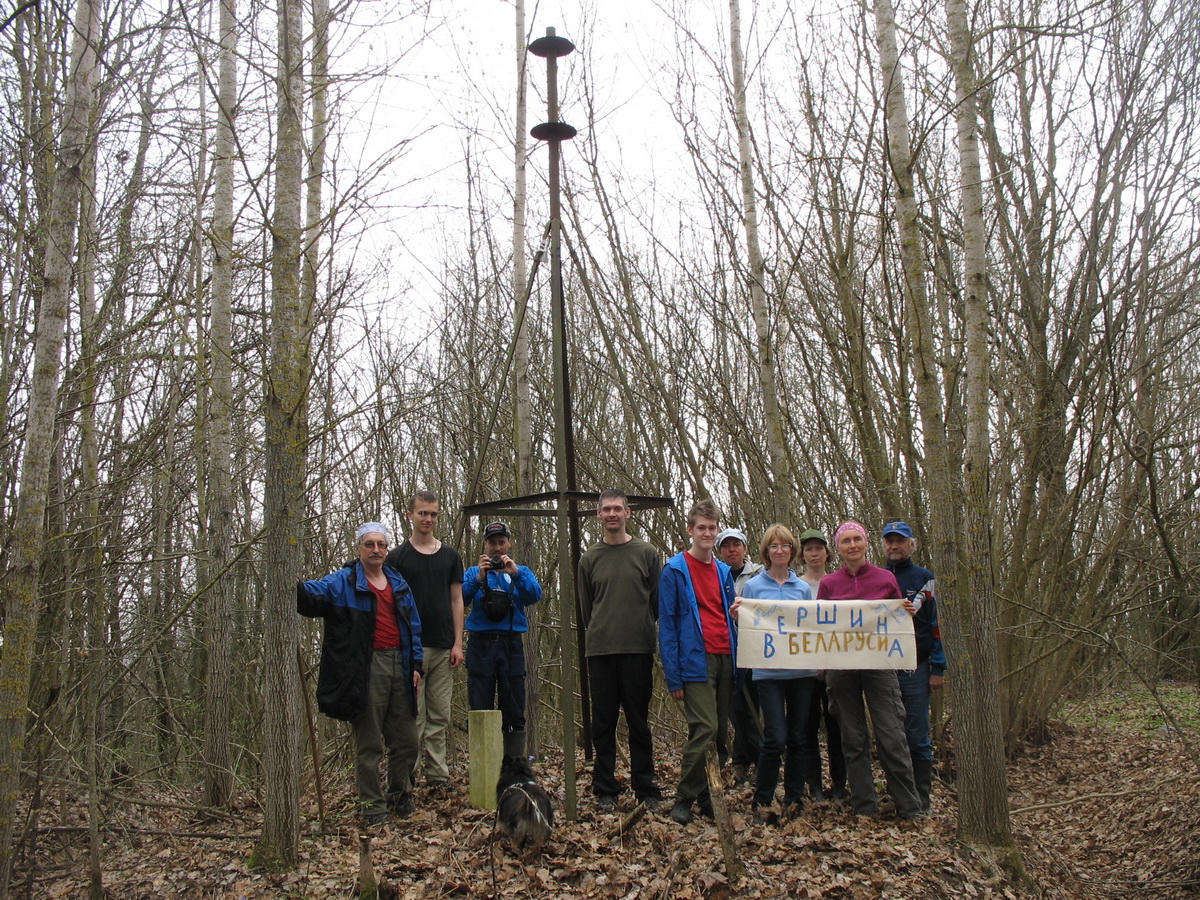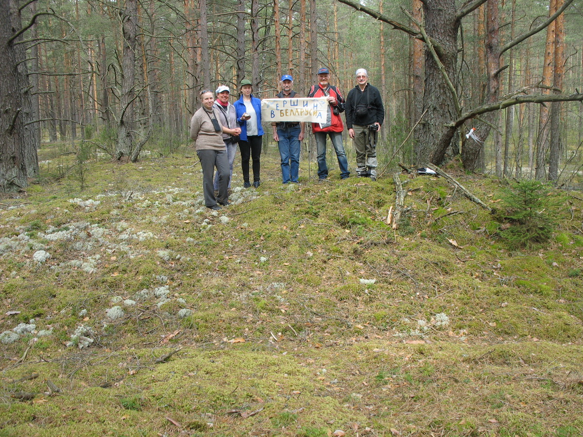 Осмотрев выше упомянутые достопримечательности Узлы, группа стала двигаться в северном направлении с небольшим отклонением на запад. Проходили д. Лужи. Затем мы пересекли автодорогу Нарочь – Брусы, от которой совершили радиальный выход на вторую плановую вершину – высшую точку урочища Каменная Гора высотой 186,8 м.