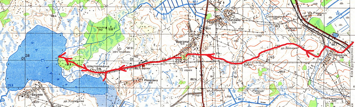 Проходили д. Веретеи, а затем шли полями. Вскоре мы достигли д. Варганы.